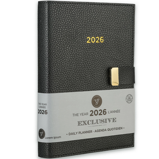 2026 Black Exclusive Daily Planner — Vegan Leather with Gold Clasp (5.7" × 8.1", Bilingual, One-Day-Per-Page)