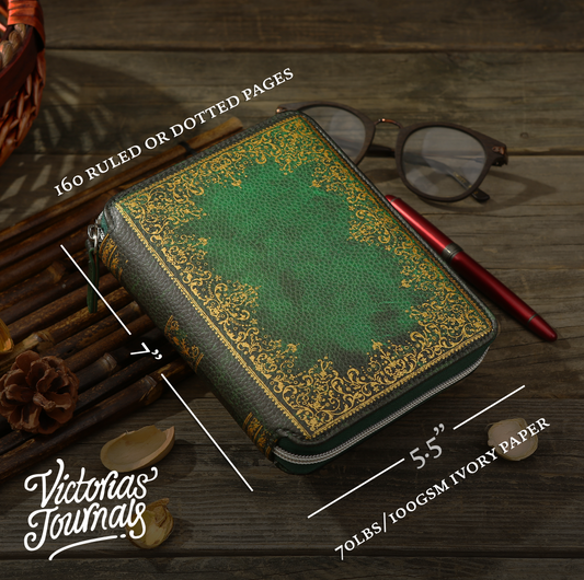 Zippered Vegan Leather Portfolio Diary (Vintage Green)