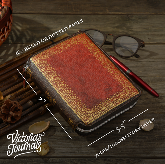 Zippered Vegan Leather Portfolio Diary (Vintage Brown)