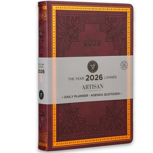 2026 Artisan Daily Planner — Burgundy Vegan Leather Vintage Style (5.7" × 8.1", Bilingual, One-Day-Per-Page)