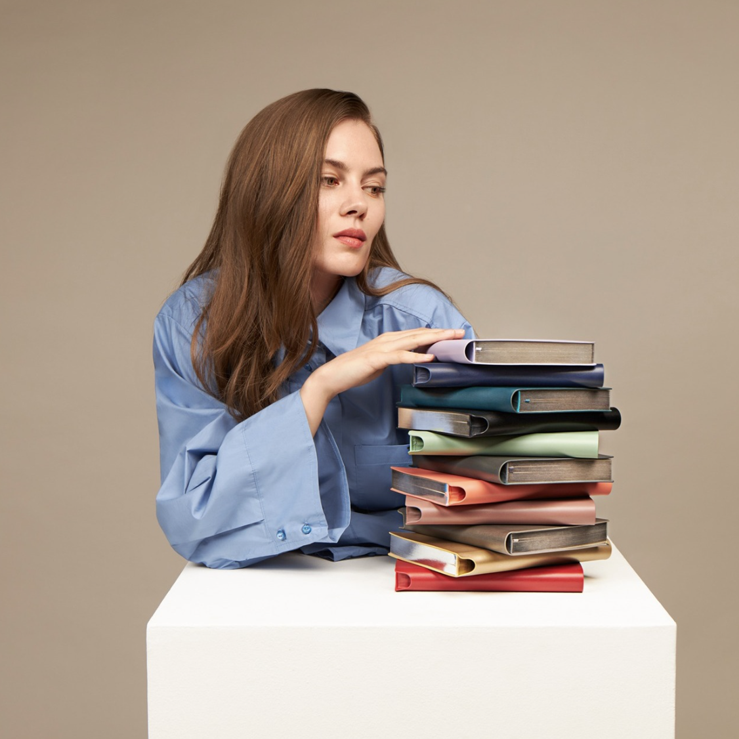 • Premium luxe cover: Gold Smyth vegan leather hard cover with matching elastic band.