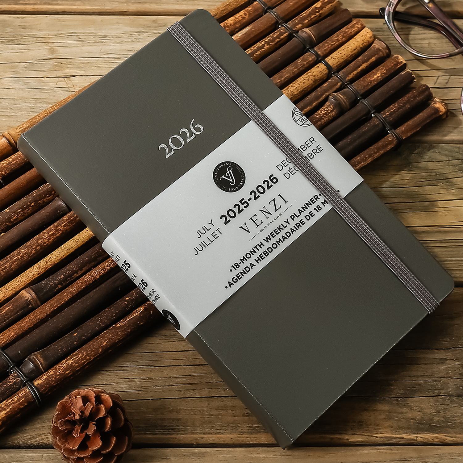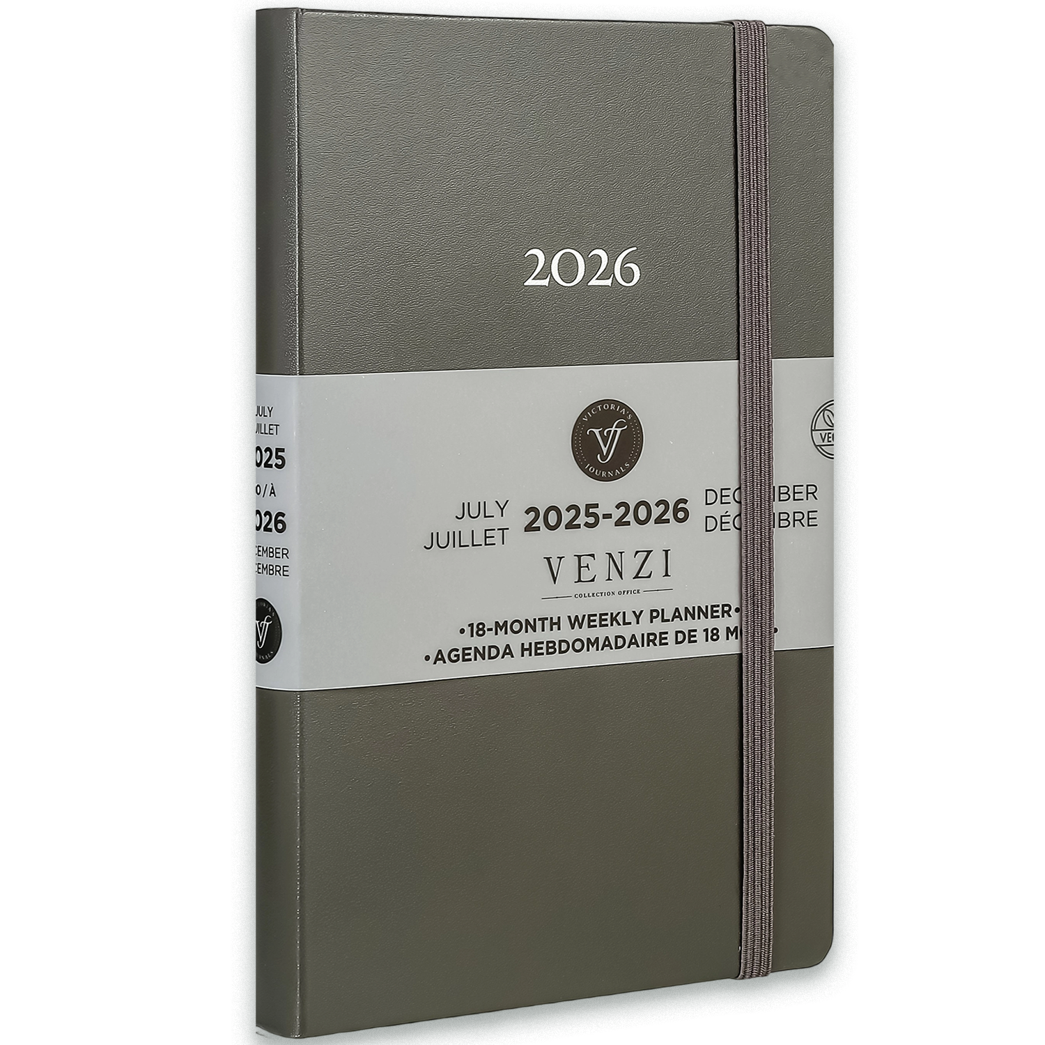 2025–2026 Weekly Planner Venzi - Grey / Gray Vegan Leather (A5, 18-Month, Bilingual)