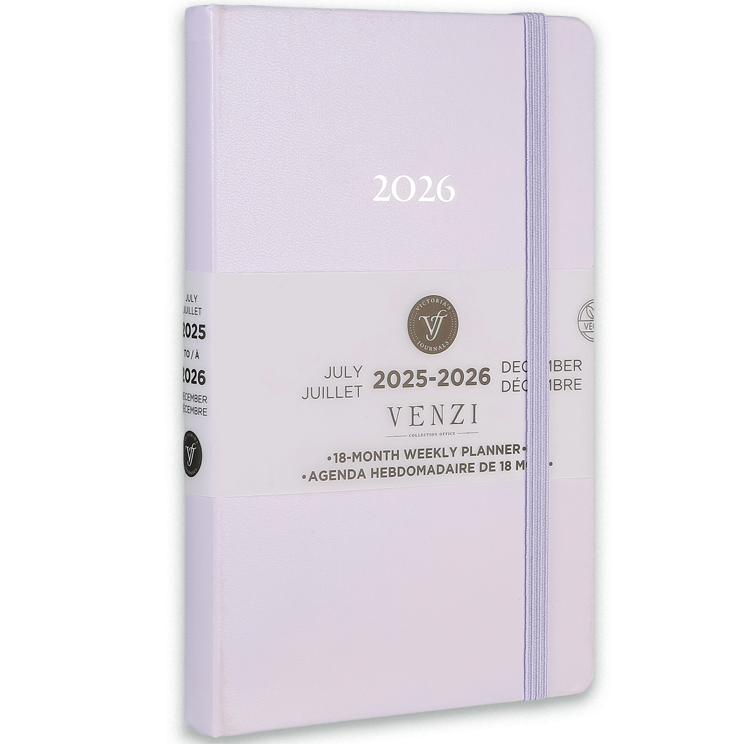 2025–2026 Weekly Planner Venzi — Lilac Vegan Leather (A5, 18-Month, Bilingual)