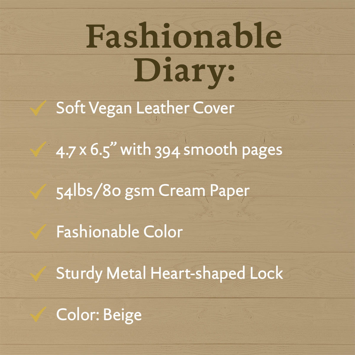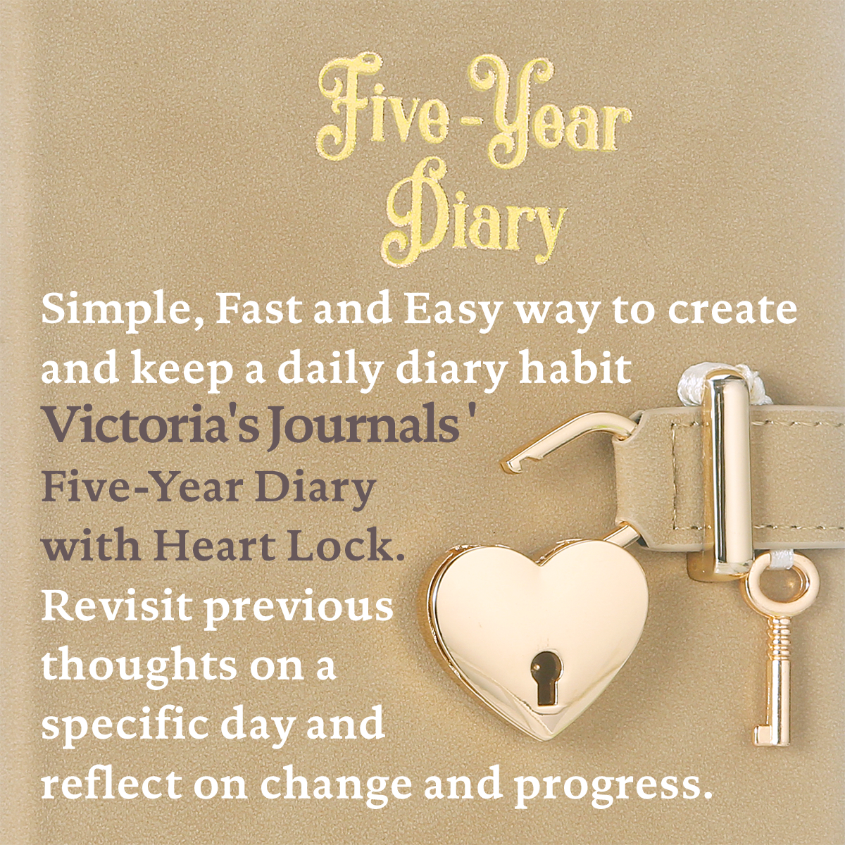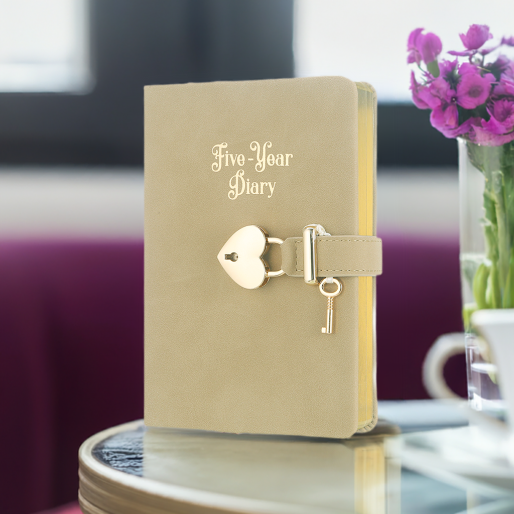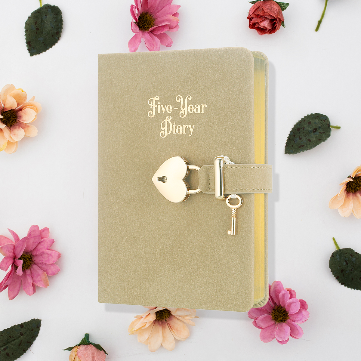 5 Year Diary for Women and Girls: Five-Year Happiness, Memory and Daily Journal with Heart Lock - 4.7x6.5", 394pages (Beige)