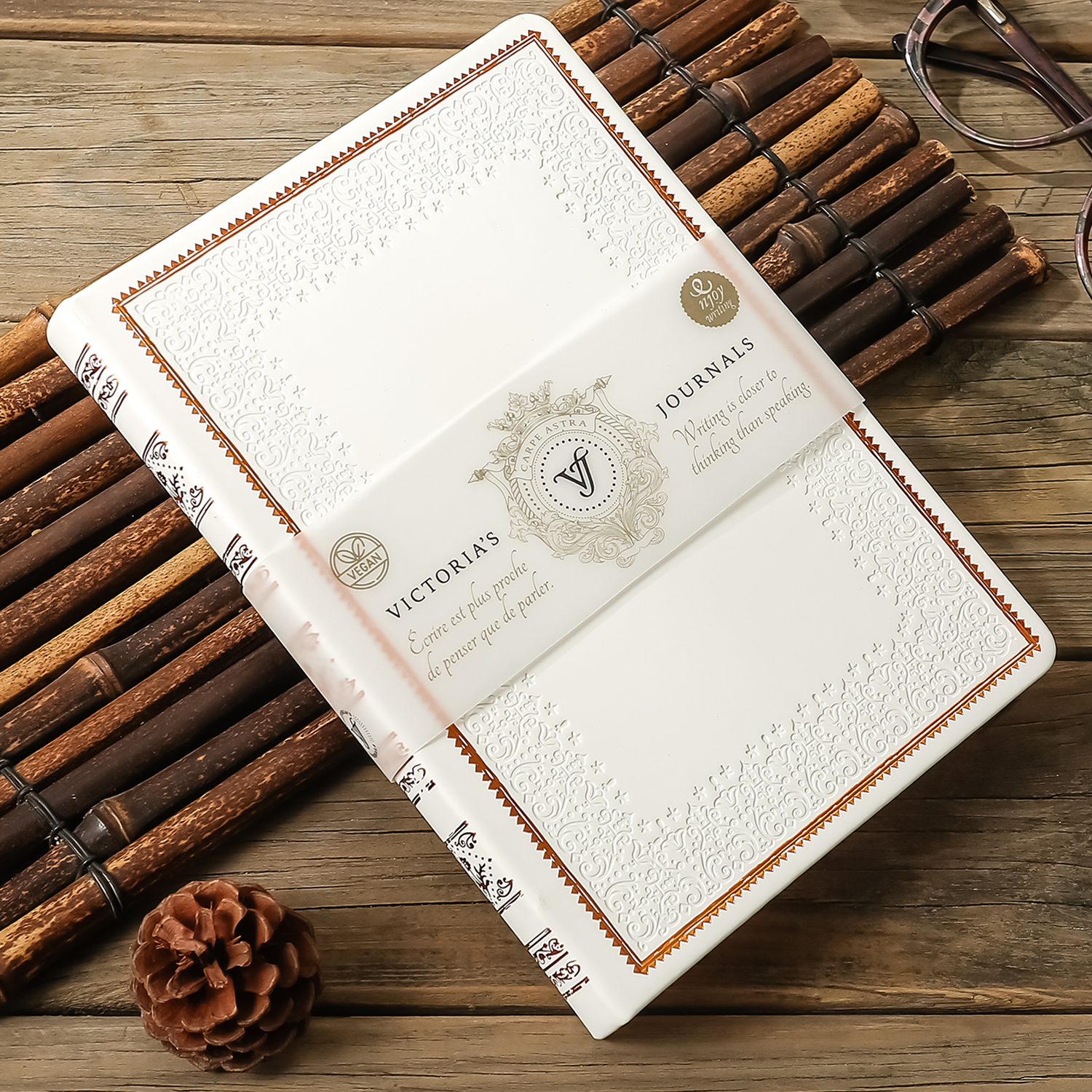 Antique Vintage Lily White Diary – 320-Page Vegan Leather Journal