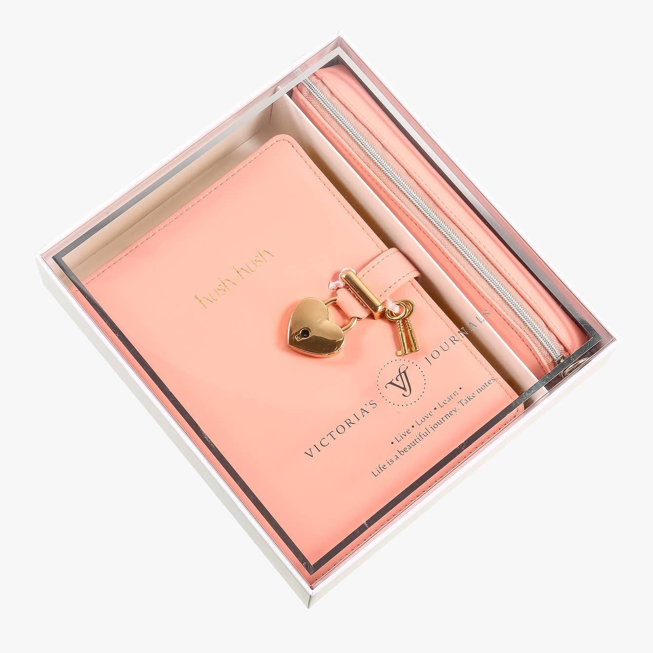 Heart Lock Journal for Girls, Teens and Tweens with Pencil Case (Pastel Pink)