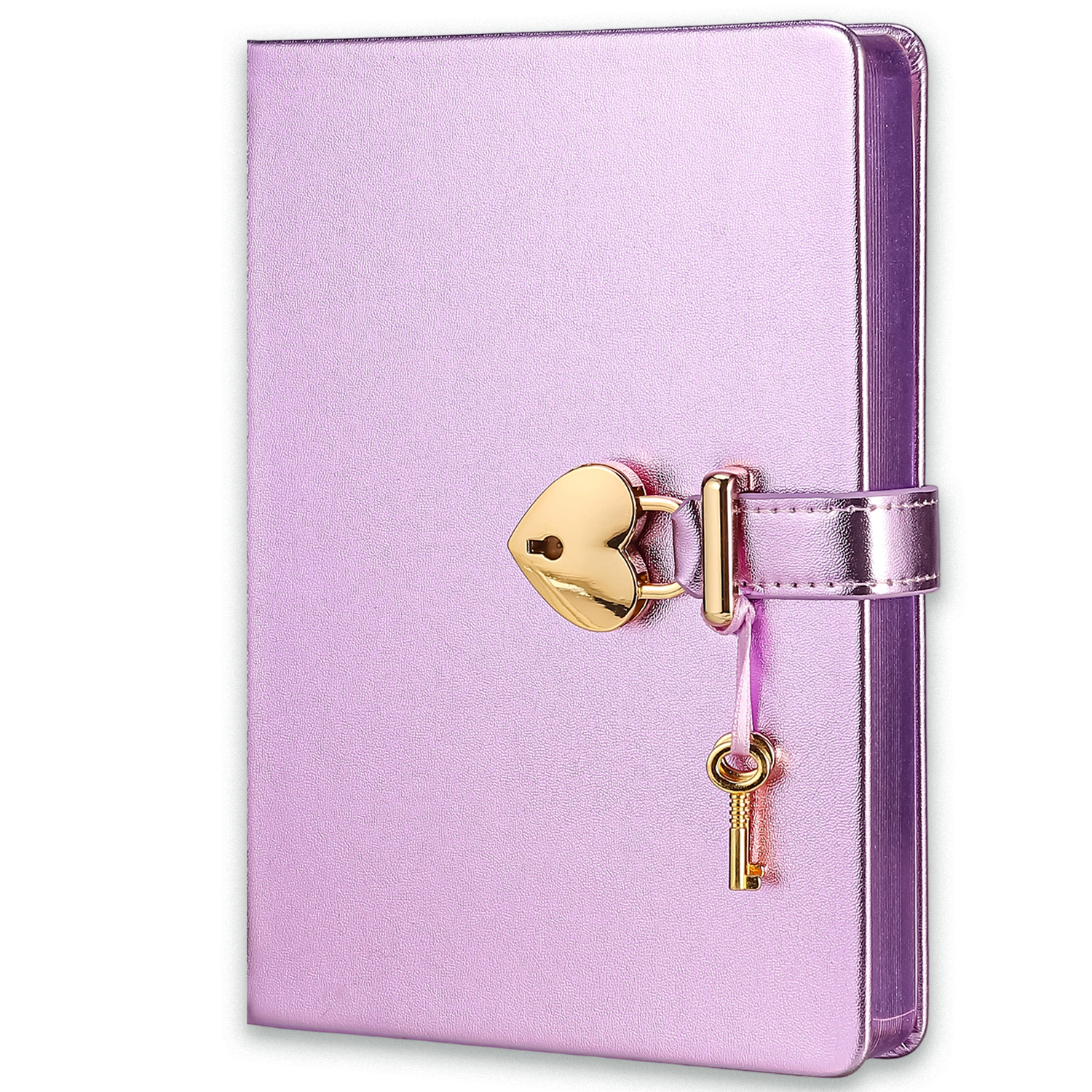 * heart lock journal, secret diary with lock, metallic purple notebook, vegan leather diary, 320 page journal, girls diary with key, college ruled notebook, fountain pen friendly, teen gift journal, cute locking notebook