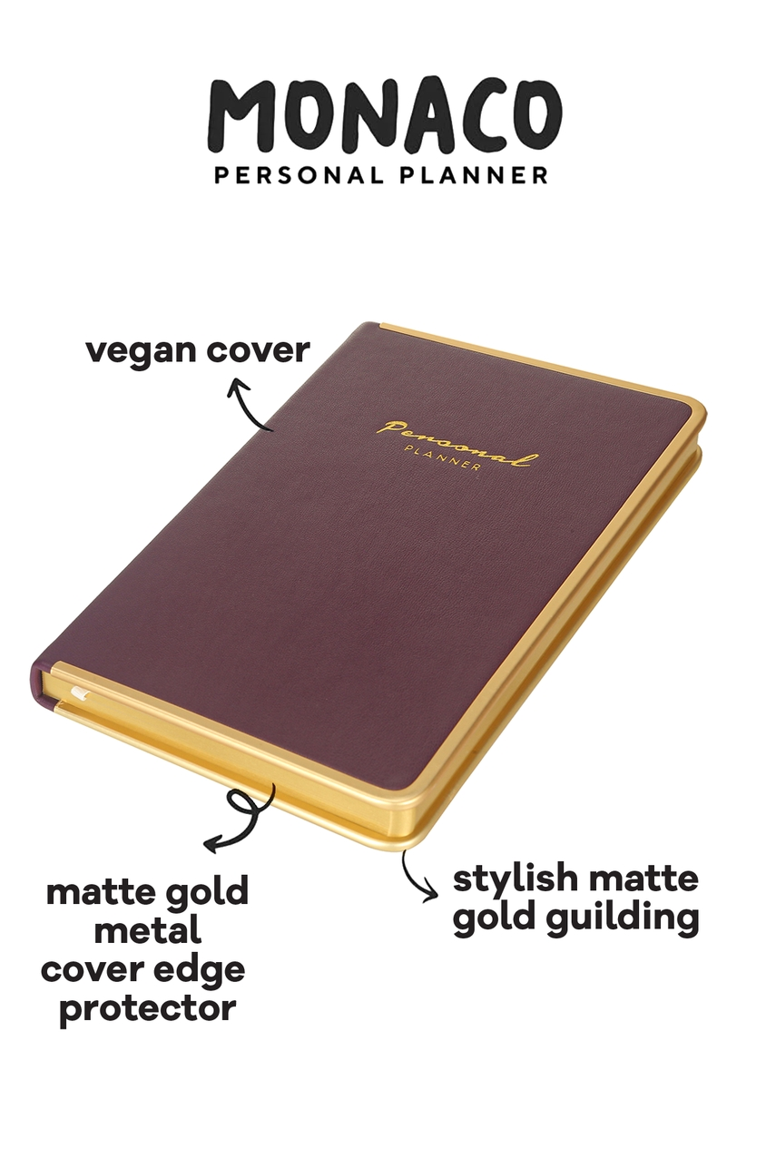 Monaco Undated Diary Personal Planner Vegan Cover (Burgundy)
