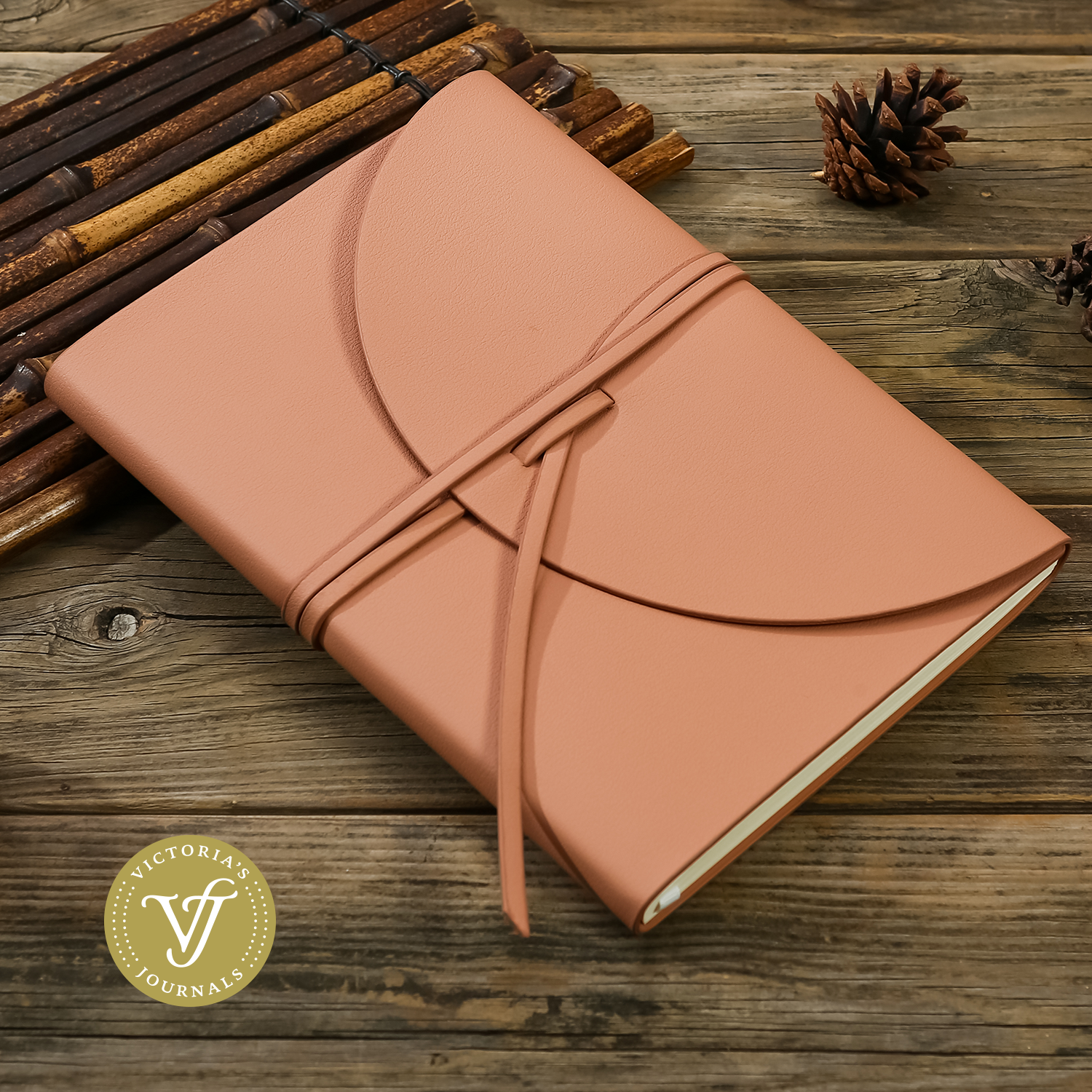 Cover: Burnt rose (dusty pink-beige) vegan leather with flexible binding
