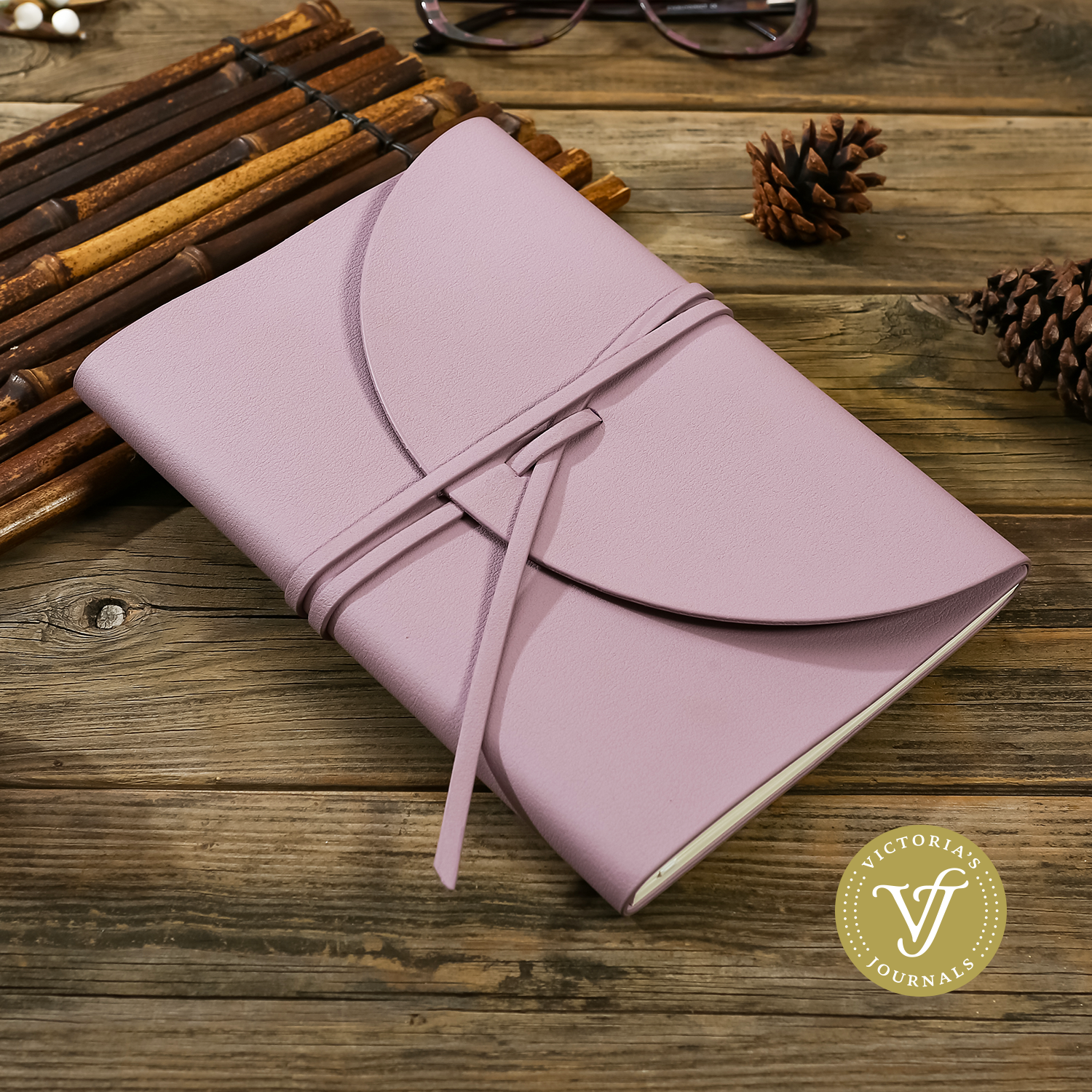 Cover: Soft lilac vegan leather with flexible wraparound binding