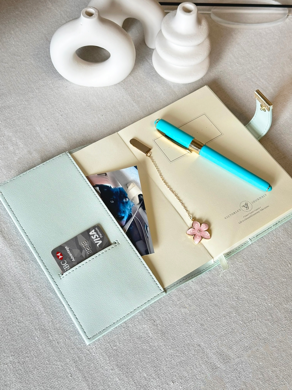 🌞 Introducing the Victoria's Journals SAKURA Journal - a vibrant and soft journal designed to inspire your creativity and keep you organized. The super soft leatherette cover is available in pastel colors that are sure to catch your eye. The button flap with a polished brass buckle, integrated in the front cover will keep your notes and scribbles tucked in safe for future use.