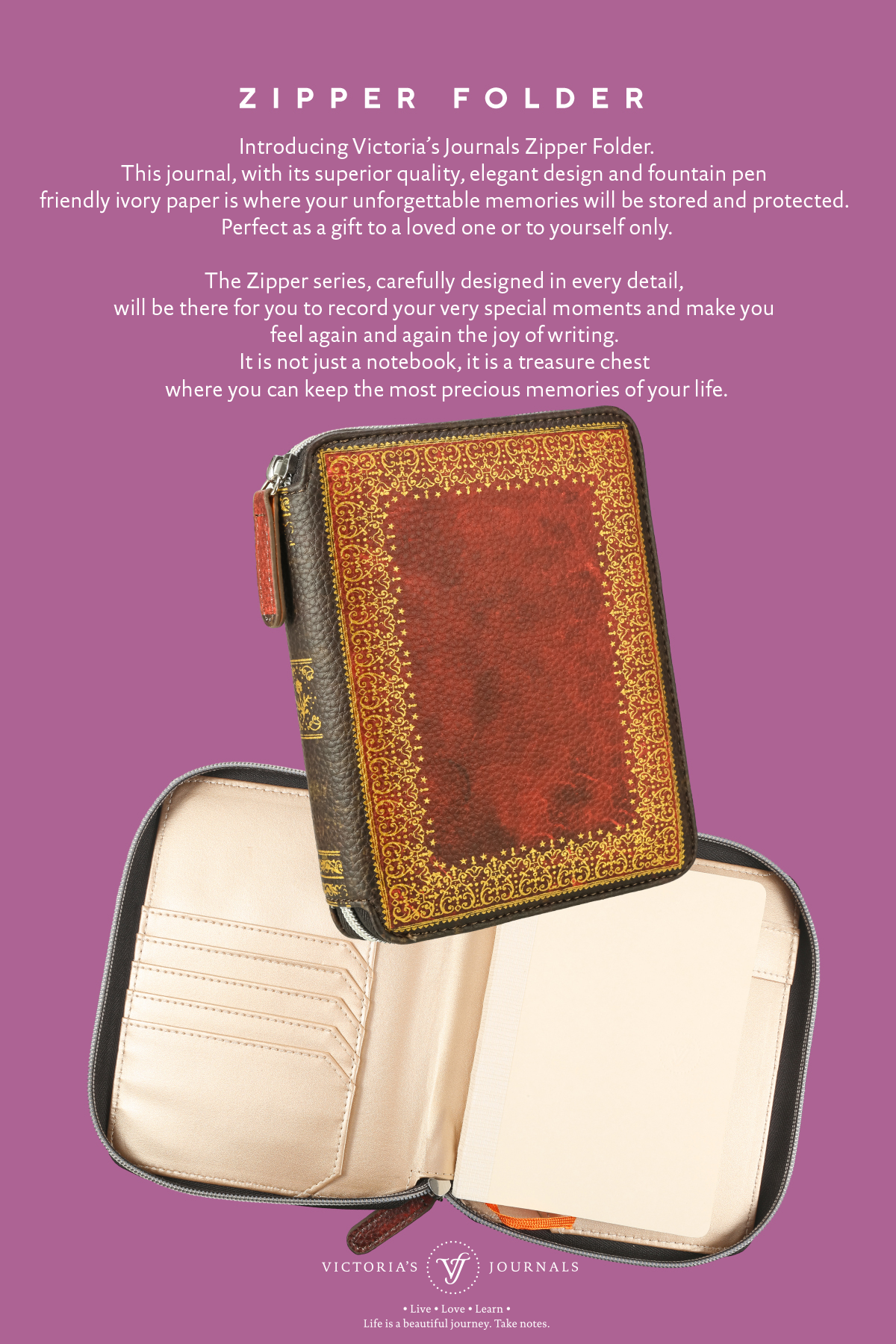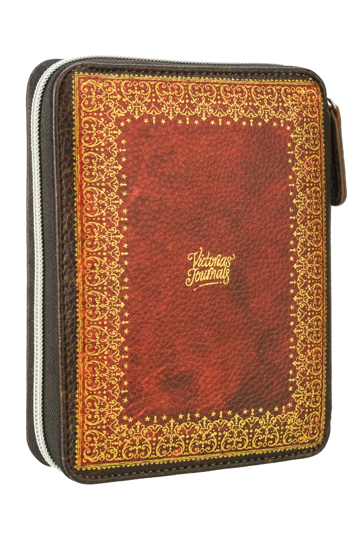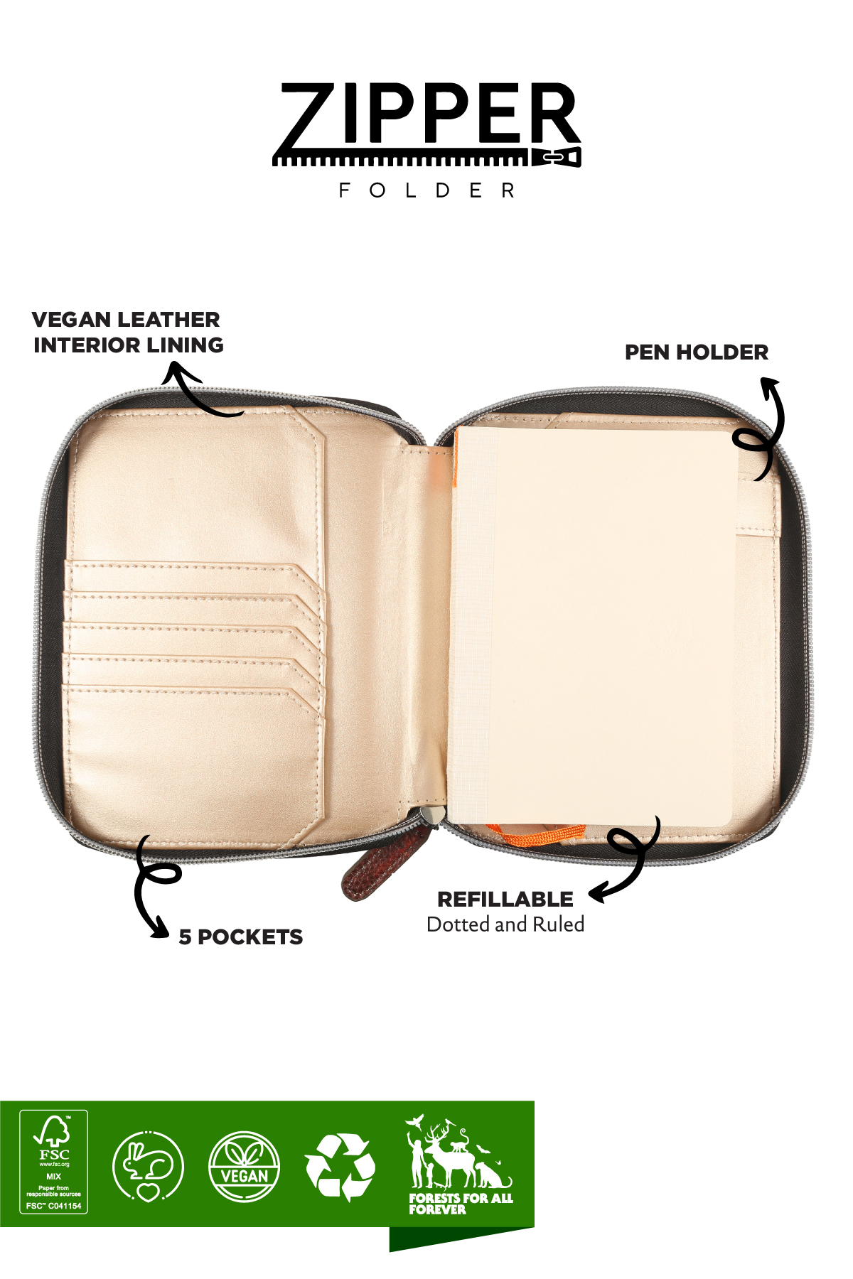 Zippered Vegan Leather Portfolio Diary (Vintage Brown)