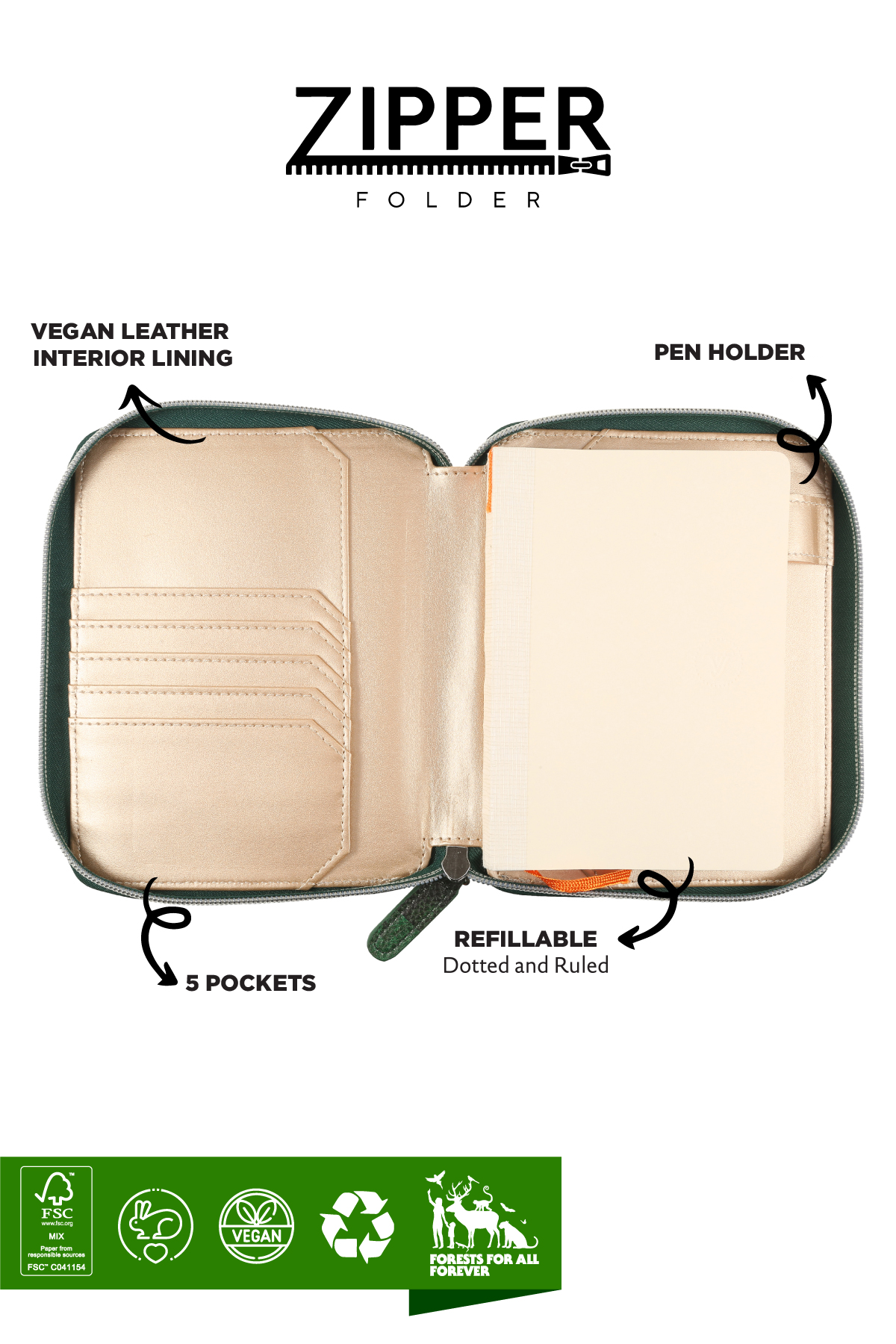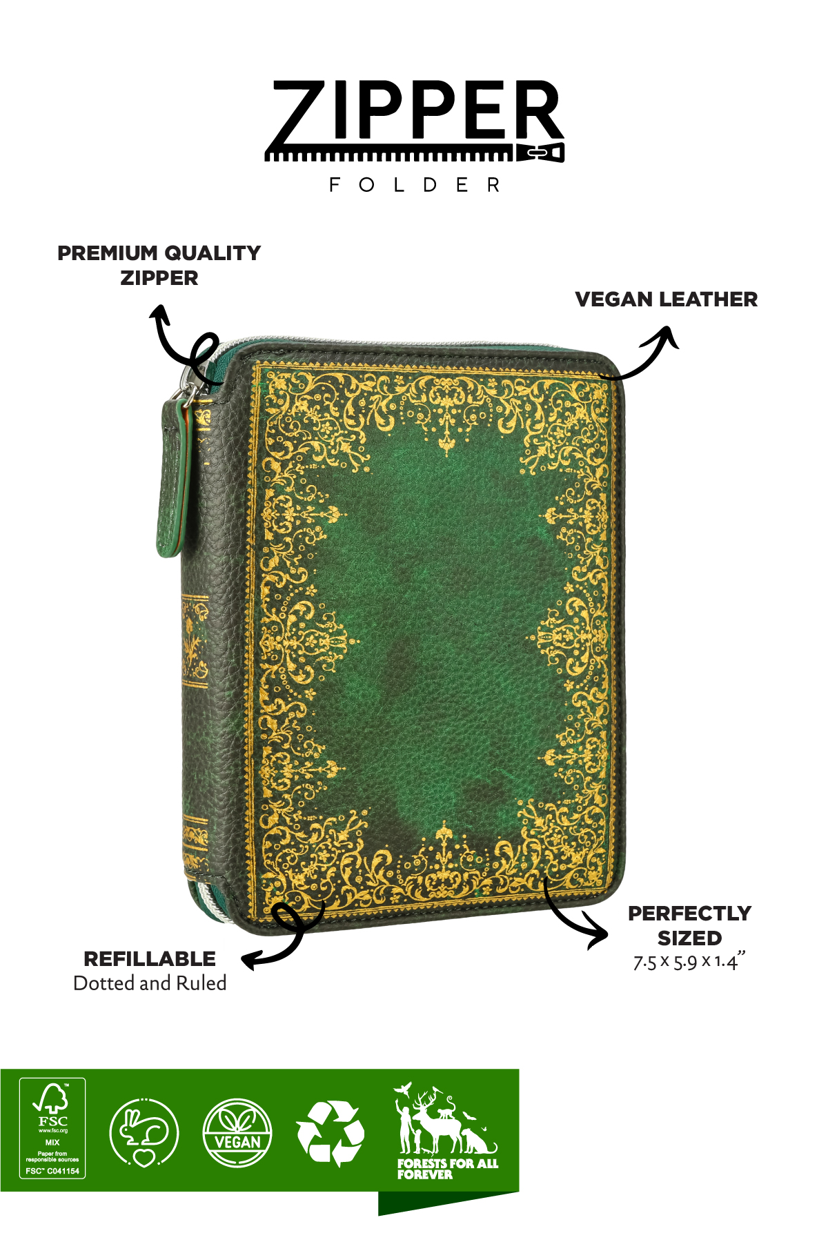 Zippered Vegan Leather Portfolio Diary (Vintage Green)