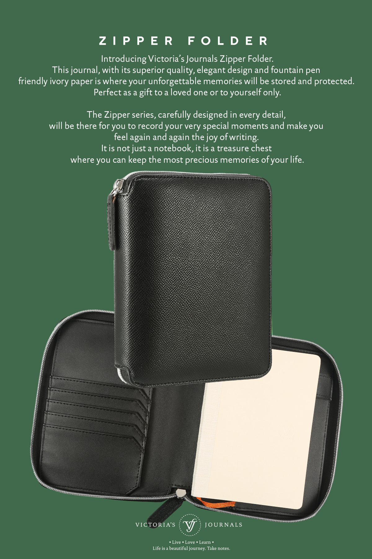 Zippered Vegan Leather Portfolio Notebook / Diary (Black)