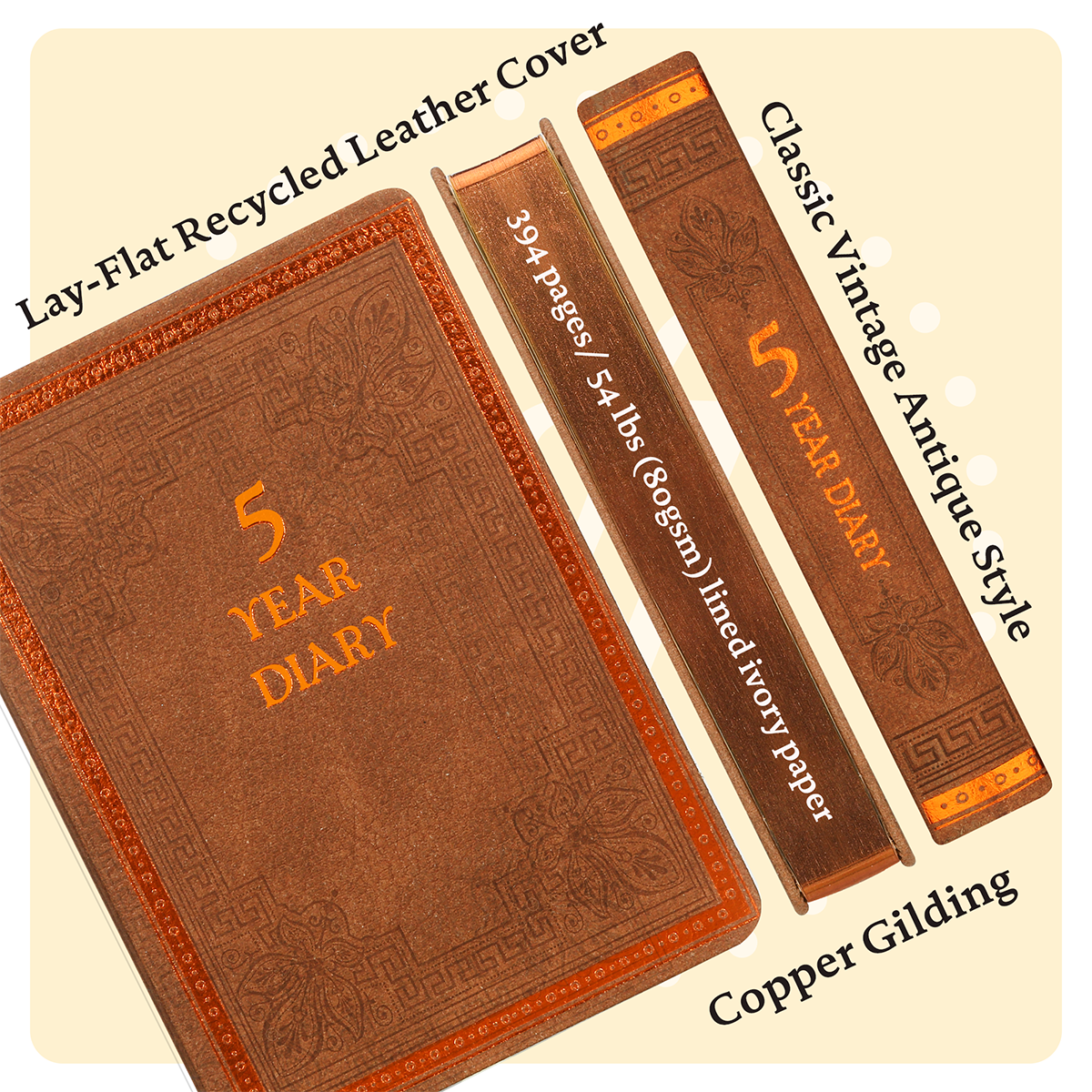 - 👍 EASY TO USE: Our 5-Year Vintage Journal is simple and inviting with just 5 ruled lines per entry that never become overwhelming. No more staring at a daunting empty page you have to fill.