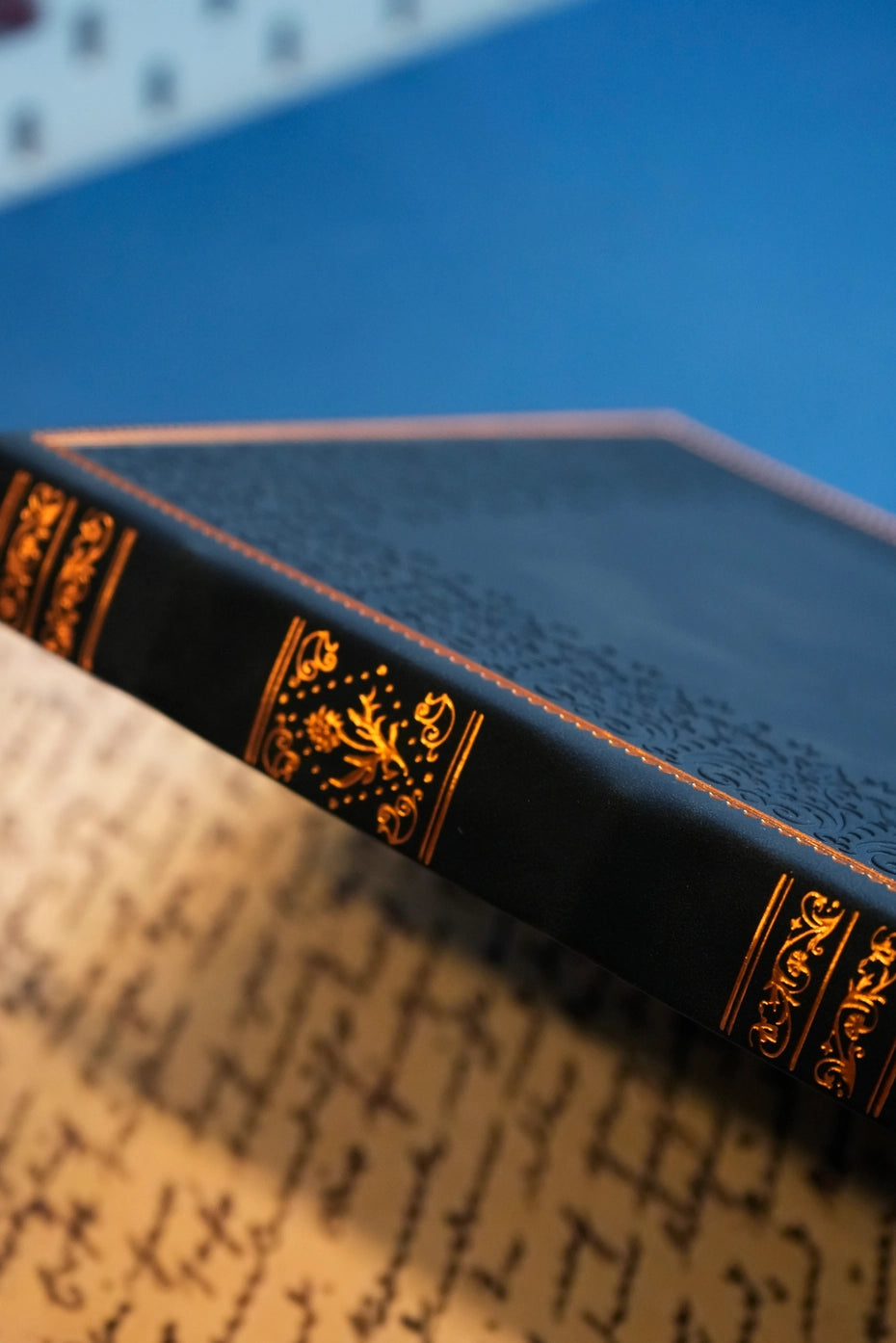 Details: Luxury Bronze Gilded Edges & 2 Integrated Ribbon Markers